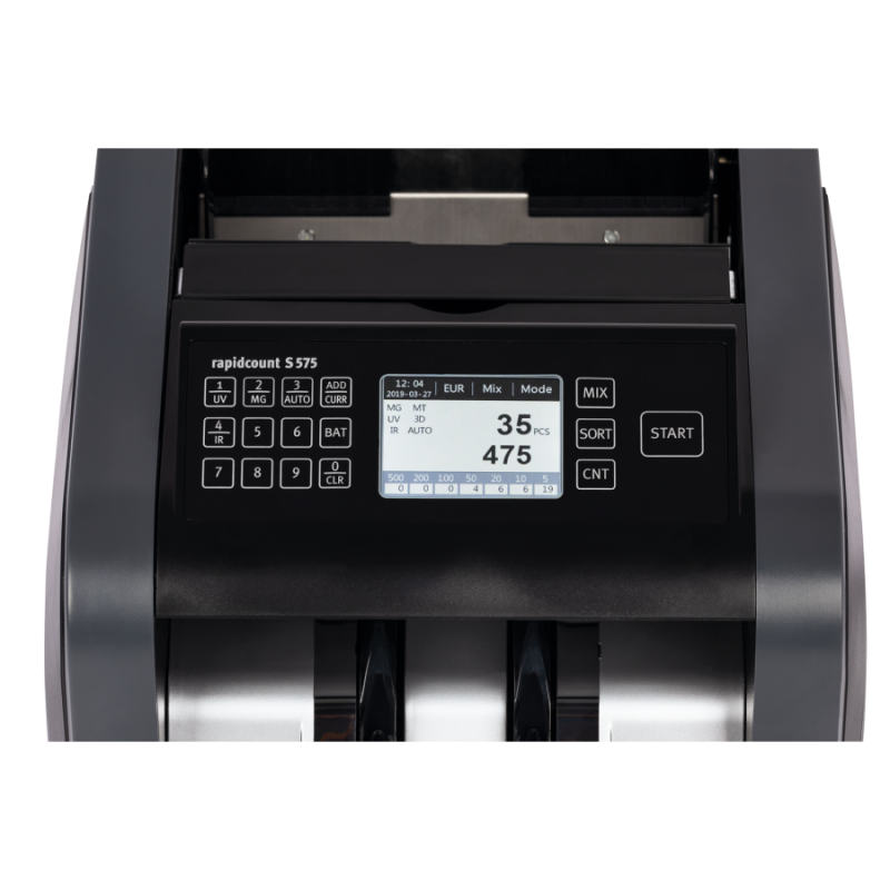 Počítadlo hodnôt a kusov bankoviek s kombinovanou detekciou falzifikátov.